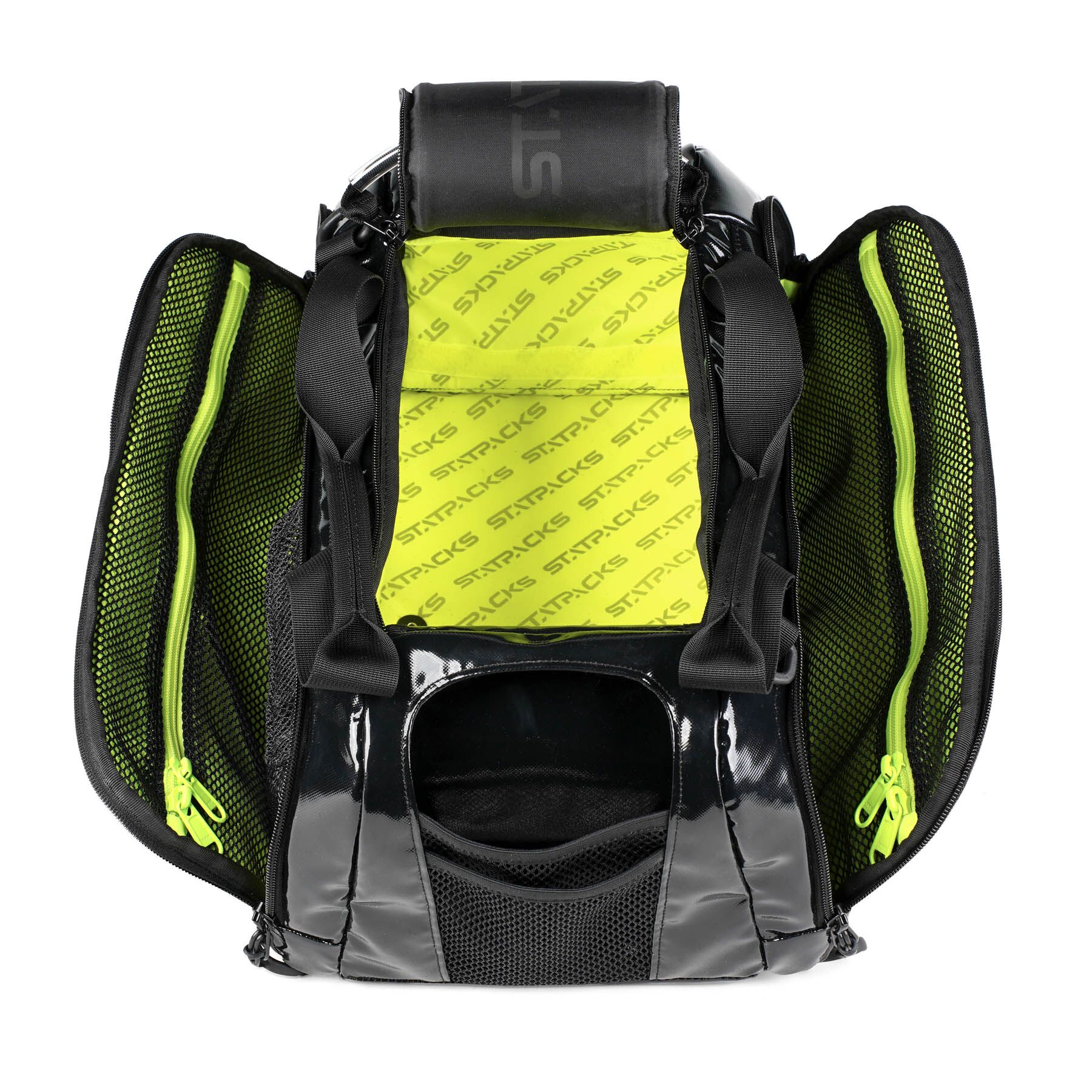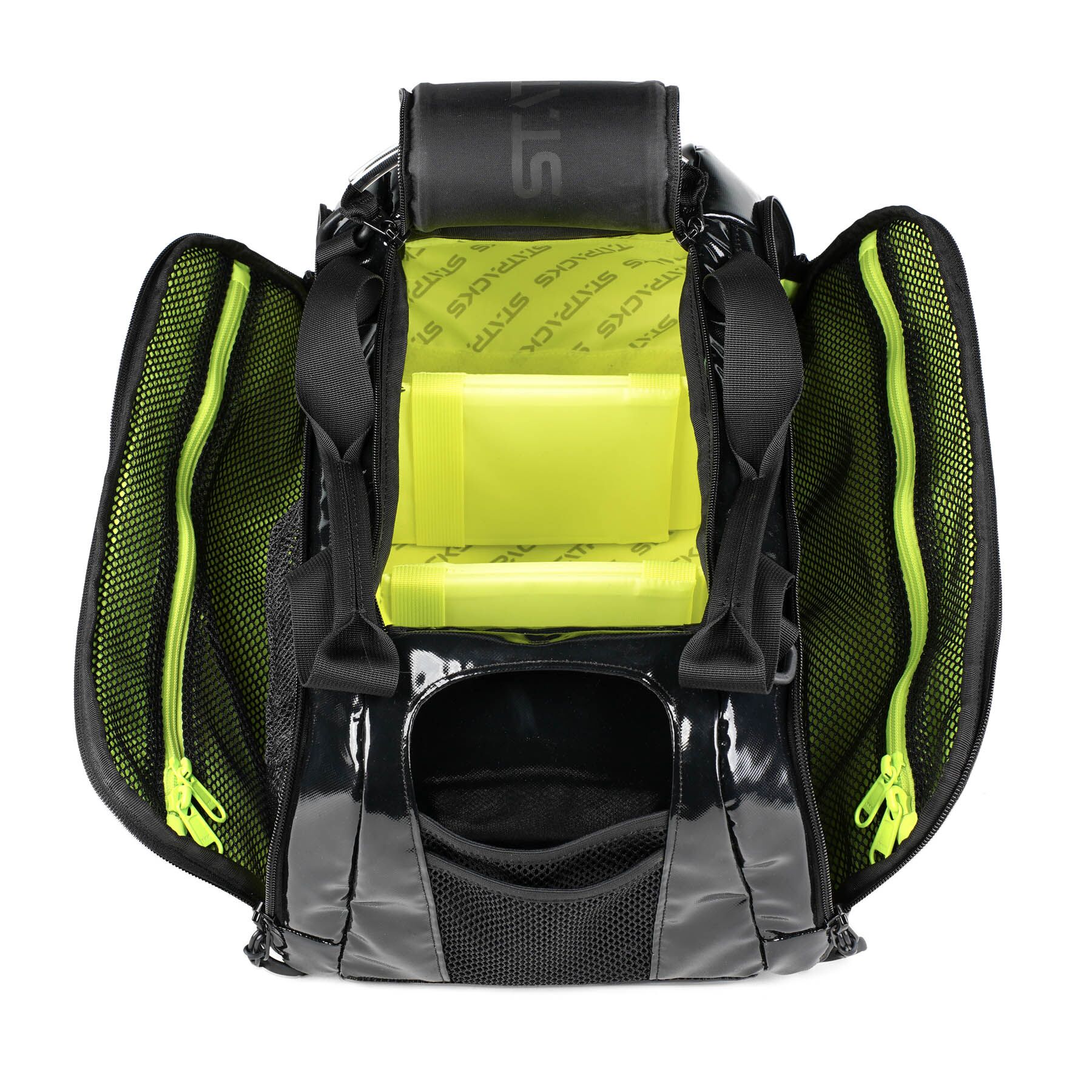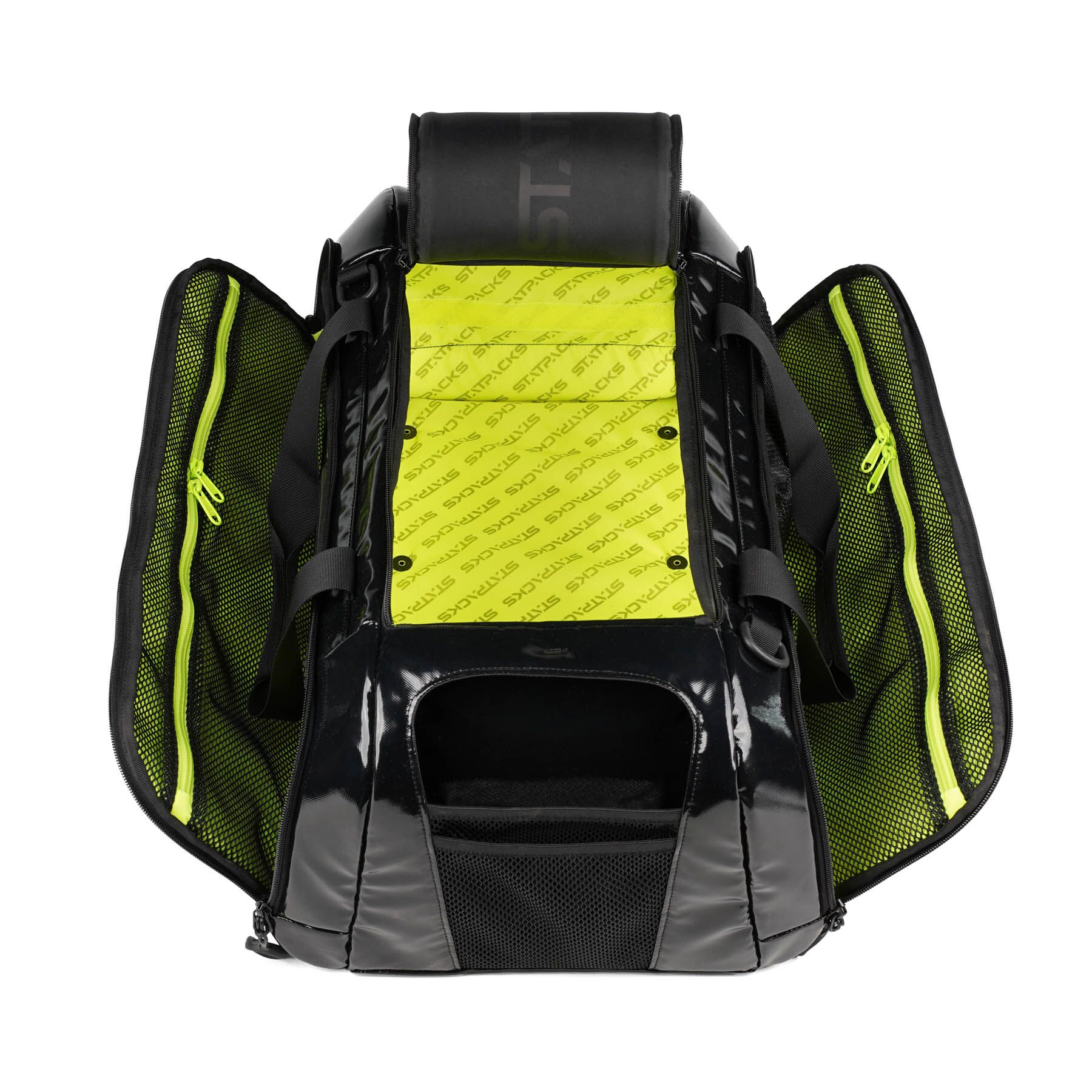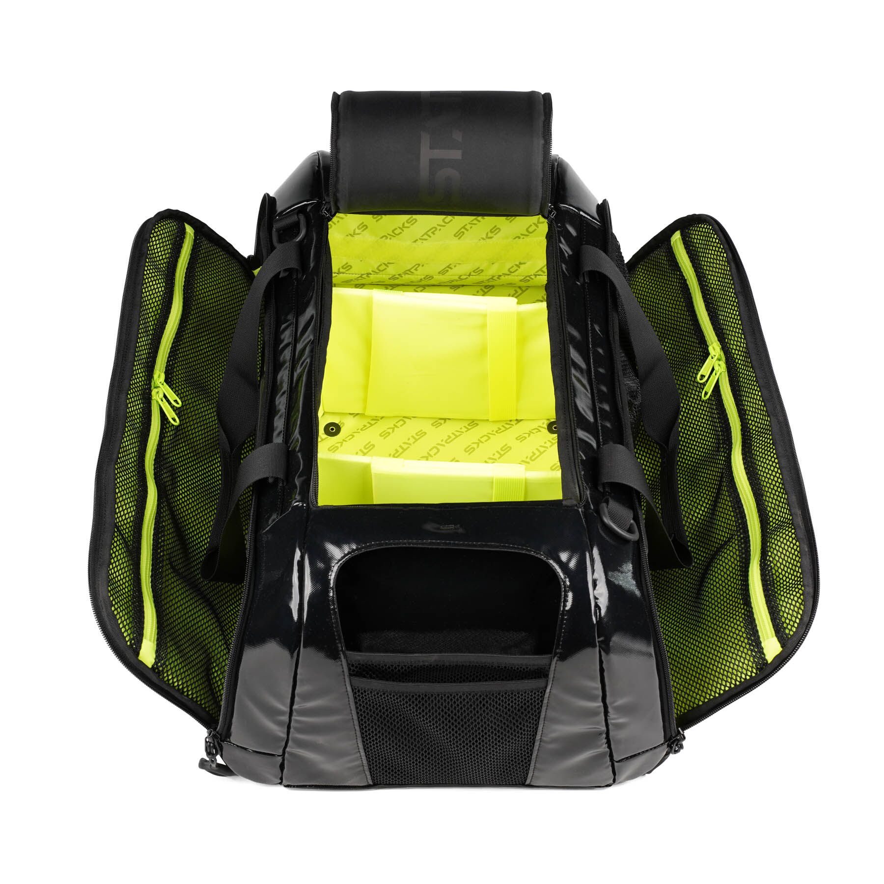 Fold-down side panels provide immediate access to mesh and zippered pockets, while the main compartment opens wide with a double-zip pull for full visibility. With reinforced skid-guard protection and multiple carry options, the Reflex Series is built for dependable performance on the sideline, in transport, or on the flight deck.